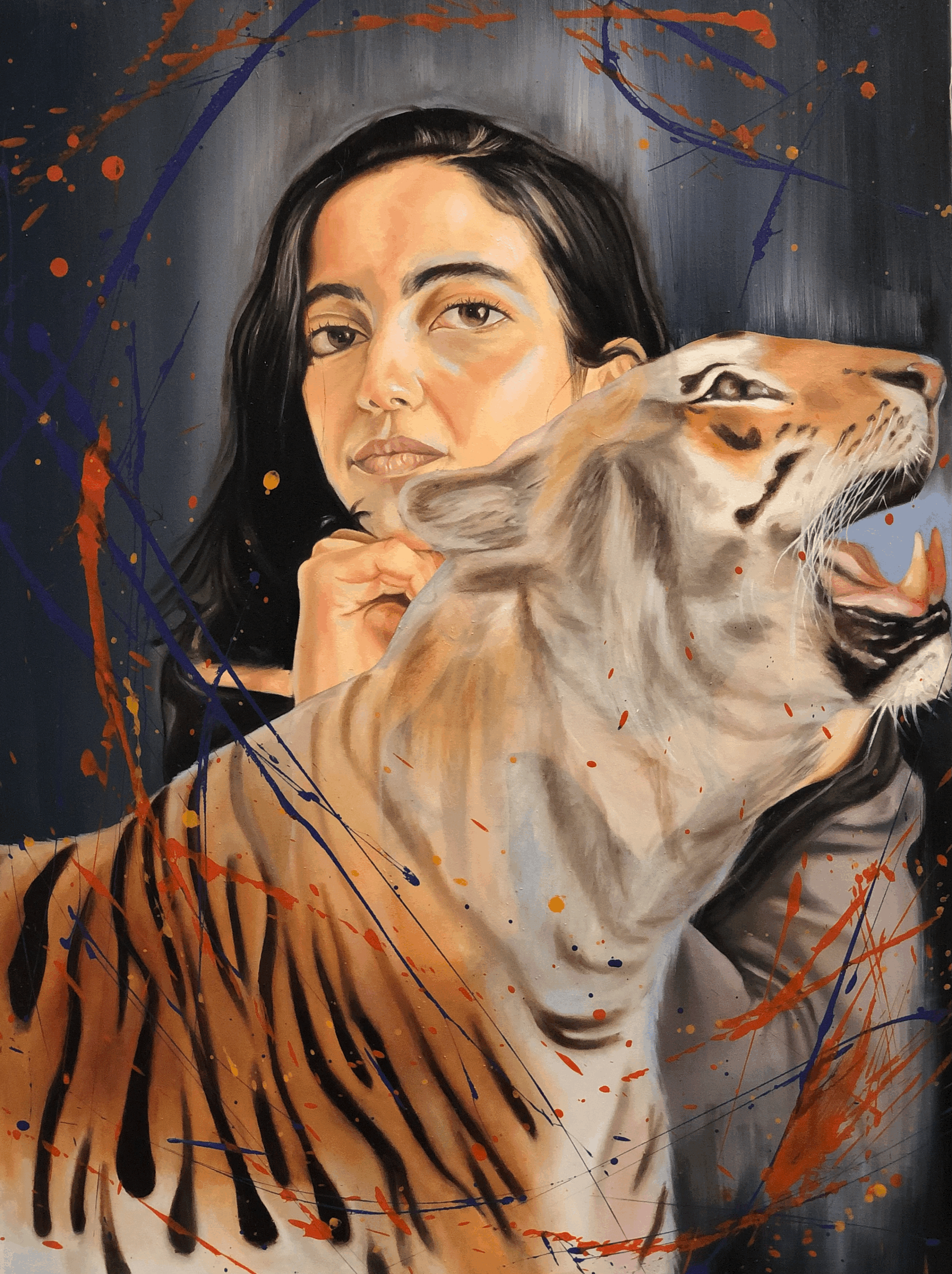 Le regard de la fille exprime la paix et le tigre représente le mari, les parents, les frères ; la sécurité n'est pas le rôle de la police mais celui de chacun d'entre nous.